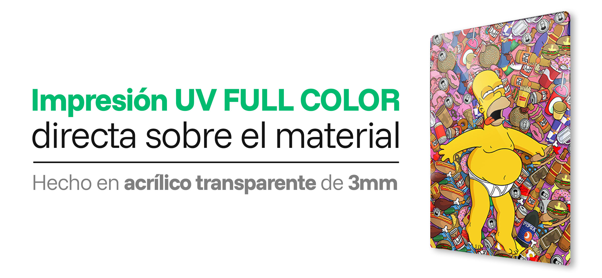 Es una tecnología de última generación que imprime directamente sobre el acrílico y fija la tinta mediante luz UV, logrando máxima precisión y durabilidad.