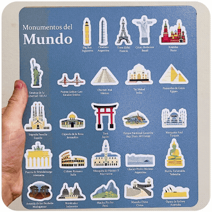 Personalizá tu mapamundi con los monumentos más icónicos del mundo. Una forma única de materializar tus experiencias viajeras y revivirlas cada vez que mires tu pared.